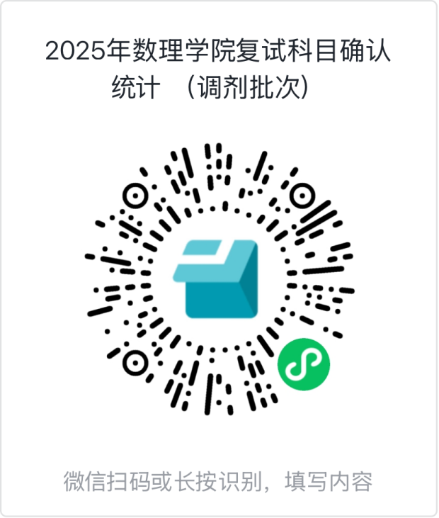 请进入调剂复试的考生务必在4月9日下午15:00前扫码填写复试科目确认统计表,将用于汇总复试科目信息以及确认是否可以按时参加复试,注意截止时间,请勿耽误后续复试工作。收集表信息仅限填写一次,请务必认真填写。及时关注邮箱及公司官网(/2131/list.htm),并保持手机联络畅通。
