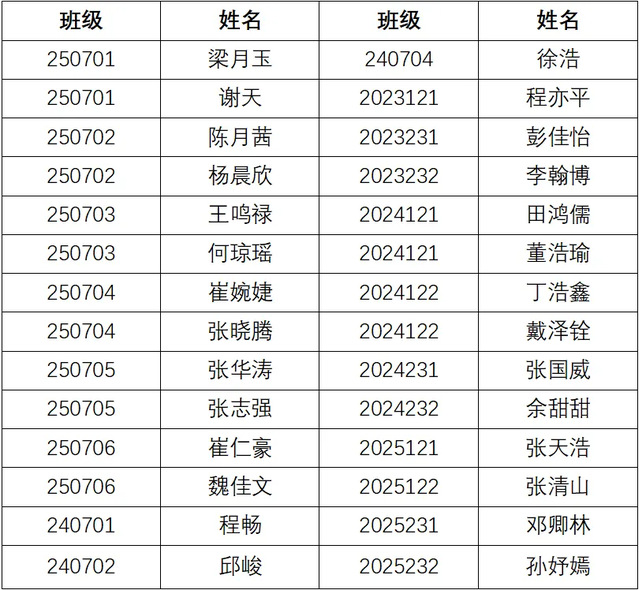 经公司各团支部确定推优候选人、民主评选、辅导员审核及公司团委复核,公司2025-2026学年第一学期推优名单公示如下: