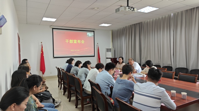 10月16日,太阳成tyc122cc干部宣布会在数理楼B301会议室举行。副董事长杨宁、公司党委组织部副部长李艳、原公司党政领导班子、新上任领导班子成员及太阳成tyc122cc教职工代表参会。会议由李艳主持。