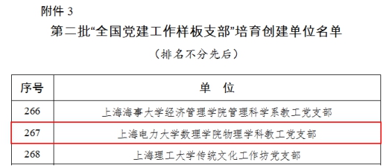 近日,教育部发布《教育部办公厅关于公布第二批全国党建工作示范高校、标杆院系、样板支部培育创建单位名单的通知》(教思政厅函〔2019〕18号),我院物理学科教工党支部入选第二批全国党建工作样板支部培育创建单位名单。