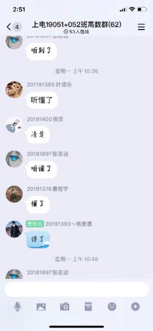 总之,通过这两周的线上教学实践,老师和同学都体验到了与课堂教学不同的乐趣,同时也学到了一些新的技能。相信在大家的共同努力下,疫情不会影响教学质量,还会成为大家共同学习进步的新契机!