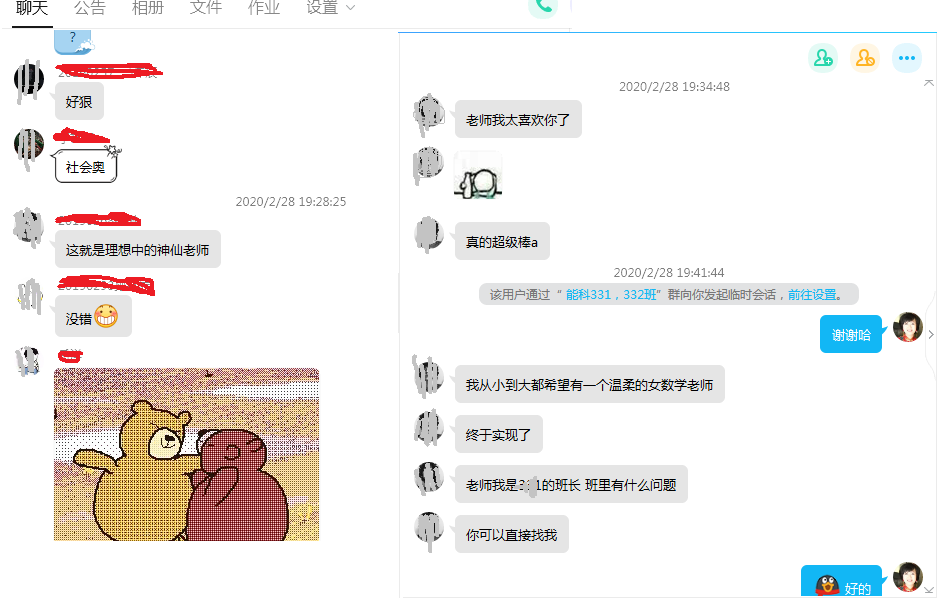 通过多种在线平台(智慧树、QQ群、腾讯课堂、千笔系统)的教学结合,线上课进行的有条不紊,甚至比课堂教学还要活跃,员工和老师们做到了充分互动。在循序渐进的努力下,班级的教学气氛变得十分活跃。