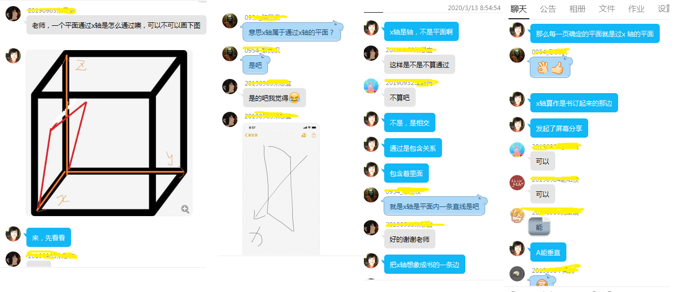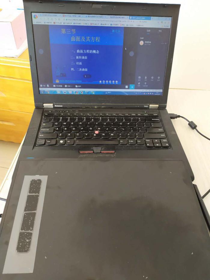 线下课堂中,数学这门课的板书非常重要,很多数学公式、定理的推导都要靠板书体现出来。但是线上教学,怎么板书数学的公式、符号、以及立体图形呢?针对这个问题,刘老师在咨询同事之后,立马买了一个超大的手写板,用分享屏幕的方式在线直播解题步骤,讲解知识点,给员工最直观的教学现场。