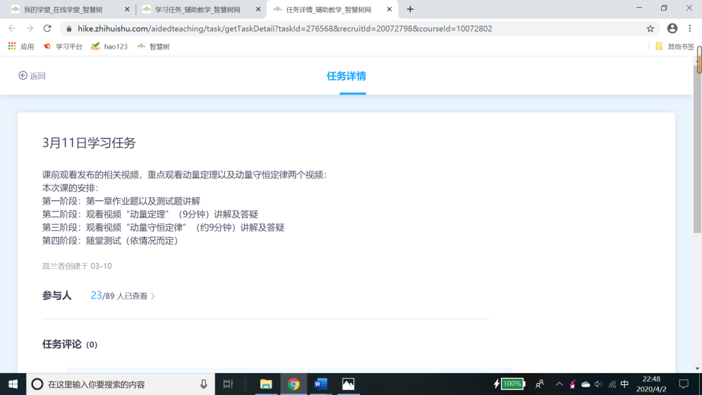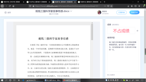 支部党员蒋秀丽同志开展线上教学,不忘开展课程思政。教学平台试用期,蒋老师为同学们选择了视频“科学家的故事—钱三强”,同学们可以自愿提交观后感,绝大部分同学积极提交了观后感,蒋老师一一评阅,和员工谈心。同学们纷纷表示要继承与发扬钱三强精神,为祖国的伟大复兴而努力学习,功成不必在我,功成必定有我。
