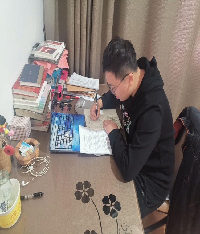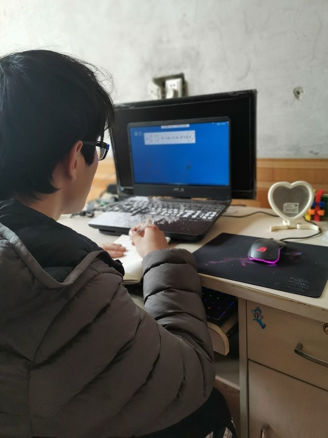 在学习过程中,老师们耐心指引,同学们一纸一笔地记录笔记。智慧树上随机抽取几位同学在QQ群中拍照上传自己昨天的作业,与同学分享自己的解题思路等等线上丰富多彩的学习“花样”极大的提高了大家的学习积极性,2019级应用物理专业19231班王学坤同学说:“网课要求严格,不敢轻易旷课,上课效率不错,作业还是吸收知识的关键。在上完网课之后,我一般会看一些国内外新闻以便了解现在国际形势和各种大事件,然后我会在晚饭前进行适当的体育锻炼,完成体育课的任务,到了晚上再思考一下有没有遗漏的作业和公司任务,之后可以利用闲暇时间读一些课外的书,像是《瓦尔登湖》《百年孤独》这种世界名著都会再重温一下,受到熏陶颇有感触,对自己的文学素养大有裨益。”用行动诠释了,人“宅”学识不能“窄”。