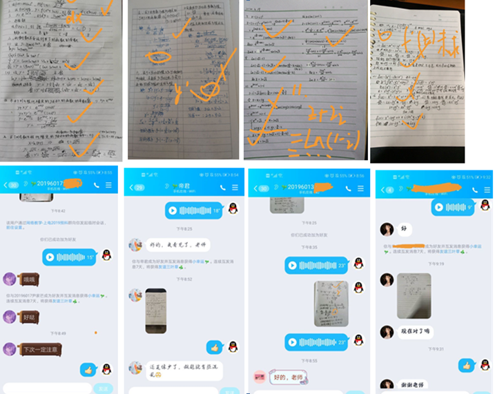线上教学与线下教学,在作业的批改上区别很大,需要教师及员工及时适应。传统教学,收纸质版作业,一起批改后发给同学。现在员工交电子版,通过使用QQ中的电子笔进行批改,对于容易出错或难于掌握的地方,李老师采用“一对一”的语音指导来加以巩固。虽然增加了工作量,但看到同学们的进步,李老师还是很开心的。课后答疑也是随问随答,为员工解答疑惑。隔离不隔心,隔屏不隔爱,有了李老师线上的陪伴,员工们的学习热情高涨。