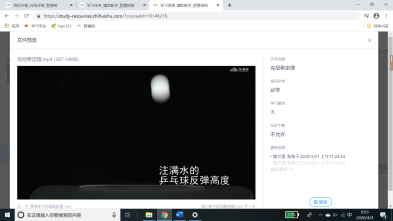 实验演示结果:将三个不同注水量的乒乓球从桌面上同一高度释放,观看小球的回弹高度;(有条件的可以现场做实验)