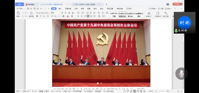 为深入学习党的十九届四中全会精神,贯彻习近平新时代中国特色社会主义思想,提高发展对象的思想政治素养以及理论水平,帮助发展对象坚定理想信念,树牢“四个意识”,增强“四个自信”。5月8日下午,公司邀请著名党政思想研究专家朱树彬为太阳成tyc122cc发展对象培训班学员们上了一堂 “解读十九届四中全会精神”的专题党课。本次党课利用腾讯会议线上开展,由公司党委副书记叶华刚主持,发展对象培训班全体学员参加。