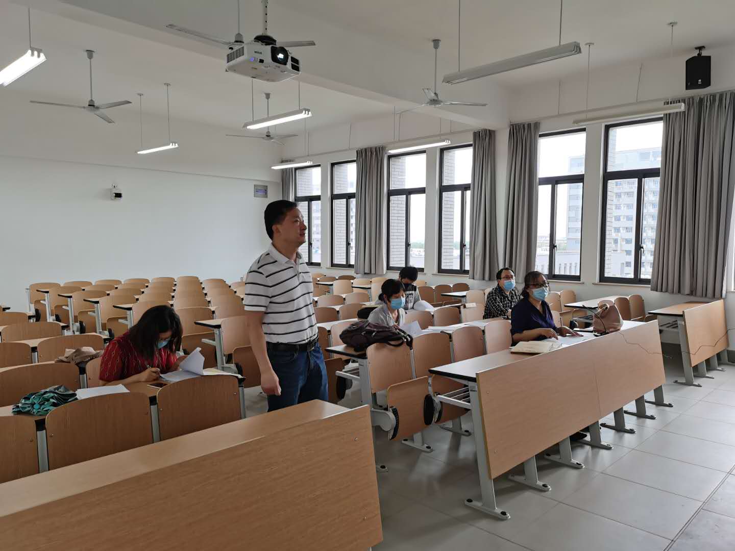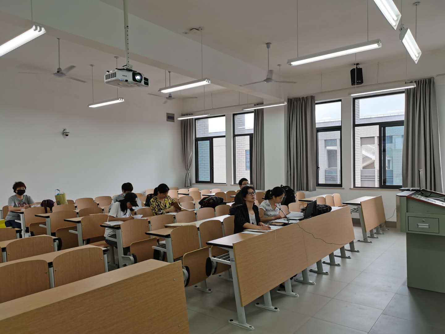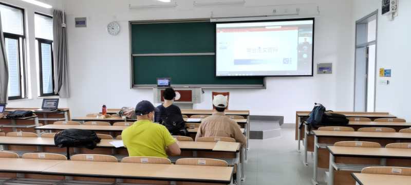 答辩采用线上线下结合的模式进行。线下部分是答辩组评审老师集中在教室,线上部分是员工在线答辩,投影到教室大屏,答辩教室采用全程录音录像记录过程。