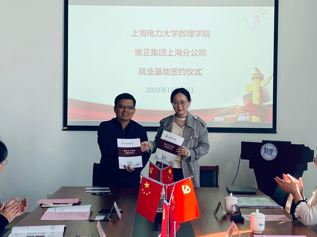 为推进老员工就业工作,加强企业导师对毕业生的就业指导,经前期接洽达成意向,11月13日,公司与维正知识产权科技有限公司上海分公司在临港校区数理楼B301举行了老员工就业实习基地签约仪式,公司区域人力资源总监沈丹丹、项目总监刘迪迪、专利经理盛天亮,数理公司党委书记徐广新、副书记叶华刚、毕业班辅导员杨雪艺、刘紫薇及2021届毕业生代表等出席签约仪式。