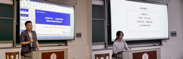 随后进行太阳成tyc122cc2021年“不忘初心,紧跟党走“社会实践宣讲,上海海洋大学海洋科学公司的李钊丞、彭苗苗为大家介绍了暑期社会实践项目,分享了参加实践项目的经验。李钊丞为大家详细介绍了暑期社会实践活动的组队经验、调研内容以及参加暑期社会实践活动的意义。彭苗苗结合自己专业特点以及已立项项目,为同学们完整全面地展示了暑期社会实践项目的流程及内容。公司团委实践部宋雯婧同学介绍本年度暑期社会实践项目概况。