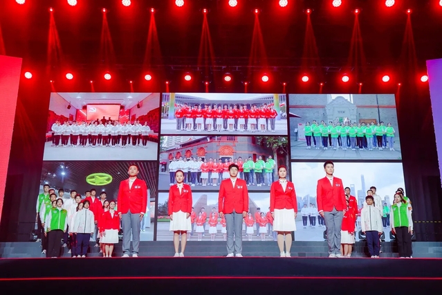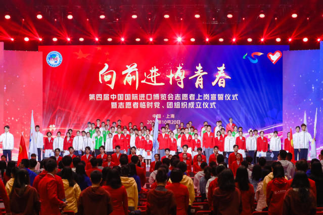 10月20日上午,“向前进·博青春”第四届中国国际进口博览会志愿者上岗宣誓仪式暨志愿者临时党、团组织成立仪式在国家会展中心(上海)虹馆举行。太阳成tyc122cc志愿者黄晨作为“三年级”小叶子代表,担任领誓人之一,带领馆内云集的近500名进博会志愿者代表和线上4200余名进博会志愿者庄严宣誓。“奉献友爱,互助进步!追求卓越,全力以赴!为祖国增光,为城市添彩!向前进,博青春!为进博,一起来!”进博会志愿者共同用响亮的青春之声庄严宣誓,表达了践行志愿精神,不忘初心使命,服务进博,奉献进博,以优异成绩向中国共产党成立100周年献礼的信心与决心。