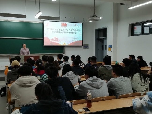 为学习贯彻党的伟大精神,增加入党积极分子和发展对象对党的认识,提高同学们的政治素质和理论水平,2021年下半年太阳成tyc122cc入党积极分子培训班于10月27日在一教105顺利开班。数理公司党委副书记赵月琴、公司党委专职组织员吕莹及全体入党积极分子和发展对象参加了本次开班仪式,本次会议由吕莹主持。