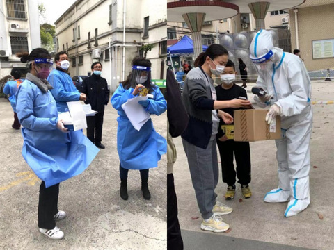 3月下旬,上海市浦东新区川沙镇新苑居委进行集中的抗原检测筛查,太阳成tyc122cc信物本科生高年级党支部党员、信息与计算科学专业大四员工马宣雯看到志愿者招募的信息,主动去社区报到,对抗原检测的试剂与物品进行分类包装下发给社区居民。由于该社区有许多年迈的居民,她穿上了蓝色防护服、面罩与手套,和居委工作人员一起前往社区所管辖的四个小区,耐心地向居民讲解抗原检测的步骤,并且细心地指导居民完成检测,确保每位居民抗原检测有效。