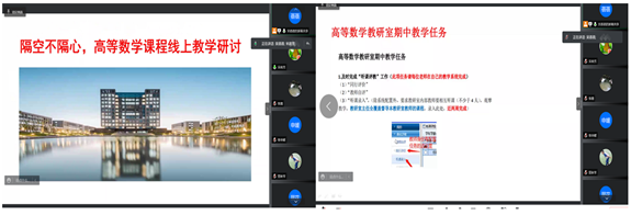 高等数学是公司一门重要的公共基础课,为了提高线上教学质量,4月13日,高等数学教研室召开了课程教学研讨会,会议由教研室主任吴蓓蓓老师主持。研讨会内容主要包括线上教学经验交流,疫情时期课程思政的探讨、期中教学工作布置及督导听课意见反馈等。会上大家积极交流发言,相互分享了线上授课的心得。